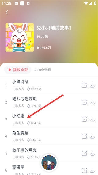 3、在音頻列表頁面點擊【小紅帽】,進(jìn)入該音頻的播放準(zhǔn)備頁面。