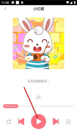 4、在播放準(zhǔn)備頁面點擊播放按鈕,開始播放【小紅帽】音頻,完成故事播放流程。