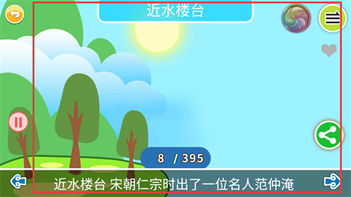 4、進(jìn)入播放頁面后,即可觀看【近水樓臺(tái)】的成語故事動(dòng)畫,完成成語學(xué)習(xí)流程。