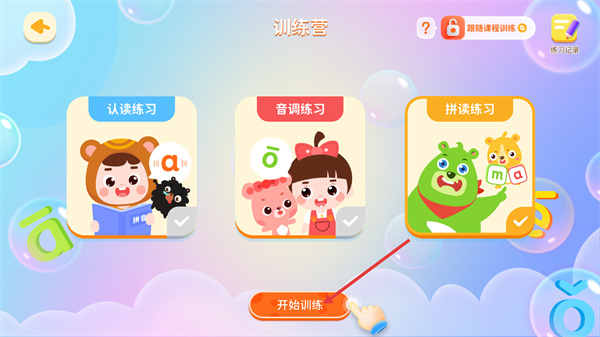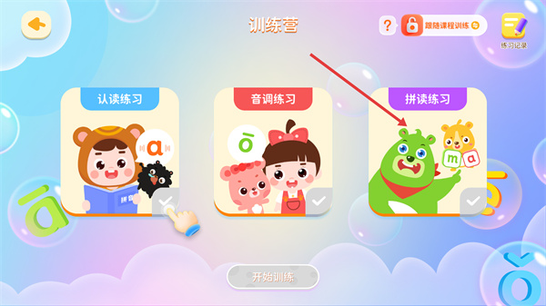 3、在訓練營頁面選擇【拼讀練習】,準備進行拼讀訓練。