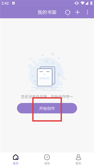 4、作品刪除后書(shū)架為空時(shí),點(diǎn)擊頁(yè)面中的【開(kāi)始創(chuàng)作】按鈕,即可啟動(dòng)新作品的創(chuàng)作流程。