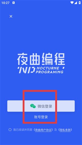 3、點擊登錄入口后,進入登錄選擇頁,可選【微信登錄】或【賬號登錄】,需先同意用戶協(xié)議及隱私條款。