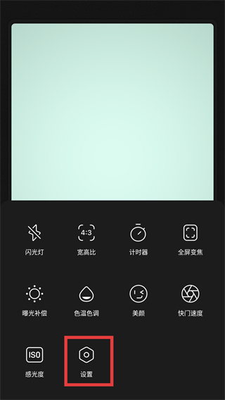 3、在展開的功能選項中,找到并點擊【設(shè)置】按鈕,可進入拍攝參數(shù)的配置界面。
