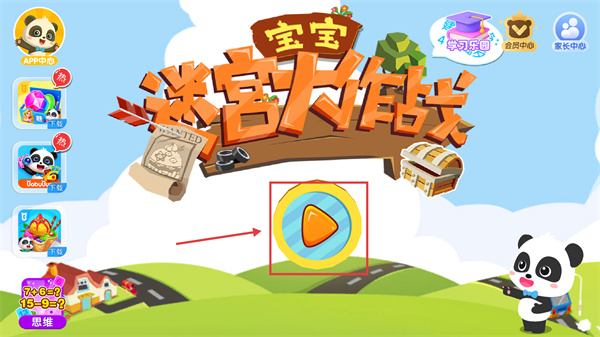 1、進入【寶寶迷宮大作戰(zhàn)】界面后,點擊中間【播放按鈕】開啟游戲,同時可查看左側【數(shù)學題】預熱思維。