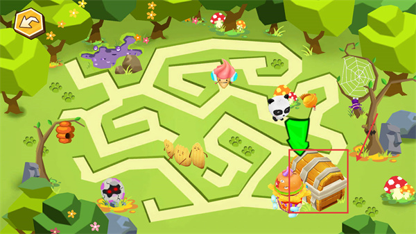 5、操作簡單易上手,寶寶只需點擊大地圖上熊貓的任意方向即可控制移動,藍色方框內會出現(xiàn)圓形小圈,輕松開啟迷宮冒險。
