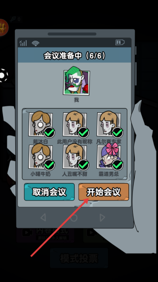 1、當(dāng)會(huì)議準(zhǔn)備界面顯示【會(huì)議準(zhǔn)備中-(6/6)】且所有玩家就緒時(shí),點(diǎn)擊【開(kāi)始會(huì)議】即可進(jìn)入游戲?qū)帧?