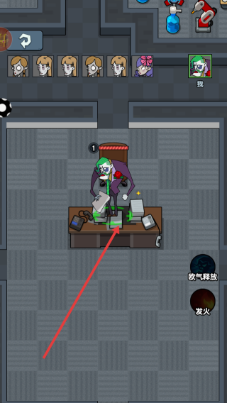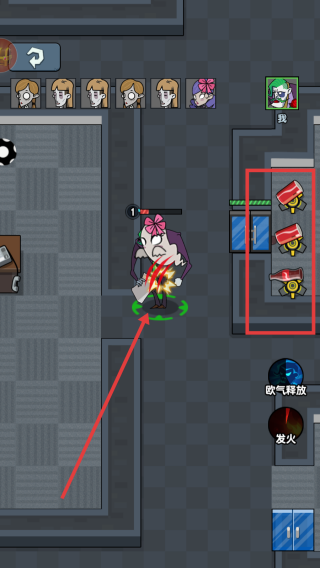 3、遭遇其他角色時(shí),可利用場(chǎng)景中的道具,像界面右側(cè)的紅色道具,對(duì)其使用來(lái)達(dá)成攻擊等效果,影響對(duì)局走向。