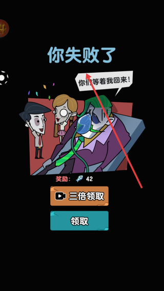 4、若對(duì)局失敗,會(huì)顯示【你失敗了】界面,此時(shí)可選擇【領(lǐng)取】基礎(chǔ)獎(jiǎng)勵(lì),或看視頻選擇【三倍領(lǐng)取】,獲取更多資源后可重新參與游戲。