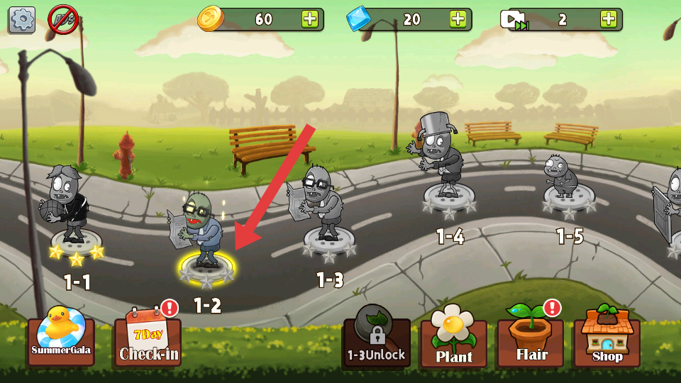 1、在關卡選擇界面,點擊如【1-2】這樣的關卡圖標,進入對應關卡準備界面。