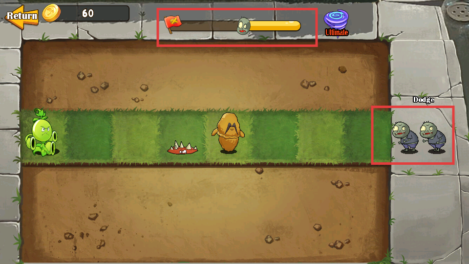 3、戰(zhàn)斗中,留意上方的僵尸進攻進度條,同時觀察右側出現(xiàn)的僵尸,指揮植物進行射擊防御。