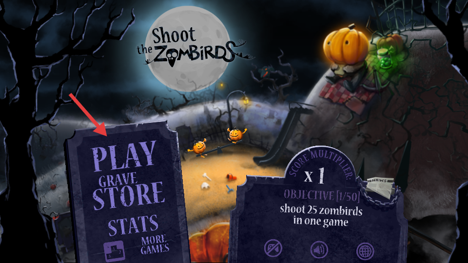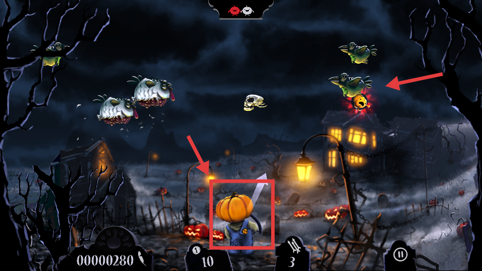 2、操控南瓜頭角色,瞄準(zhǔn)空中的僵尸鳥(niǎo)進(jìn)行射擊。