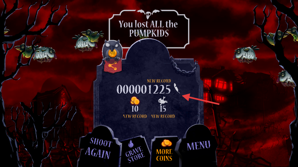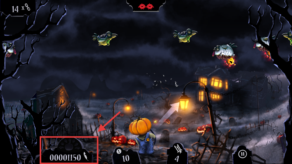 3、持續(xù)射擊僵尸鳥(niǎo),關(guān)注左下角得分變化,積累游戲分?jǐn)?shù)。