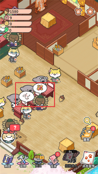 2、角色頭上出現(xiàn)【氣泡】時(shí),點(diǎn)擊氣泡,幫動(dòng)物治病,可獲取橡子,加快解鎖設(shè)施進(jìn)度。