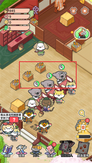 3、考拉角色頭上帶有【綠色圈】的是正在為動(dòng)物治病中,完成后資源獲取,積累橡子。