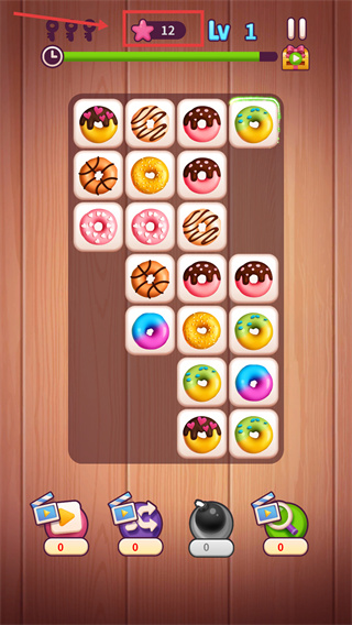 2、消除后留意【☆-12】的增長,同時關(guān)注界面空缺區(qū)域,后續(xù)甜甜圈會填充,繼續(xù)匹配同款式消除。