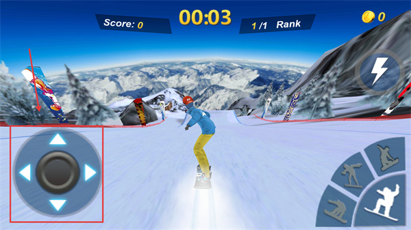 2、操控左側【方向控制鍵】調(diào)整滑行路線,避開賽道障礙,同時關注【Score】-0的數(shù)值變化以積累分數(shù)。