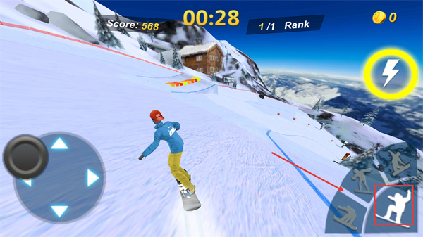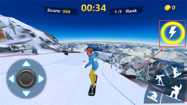 3、滑行過程中點擊右側【特技動作鍵】,完成特技可提升【Score】-568的分數(shù),助力提升排名。