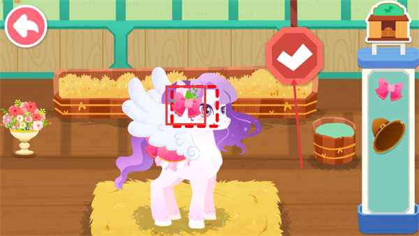 4、隨后給小馬戴【裝飾】,出現(xiàn)【紅色對(duì)勾】按鈕,點(diǎn)擊即可完成任務(wù)。