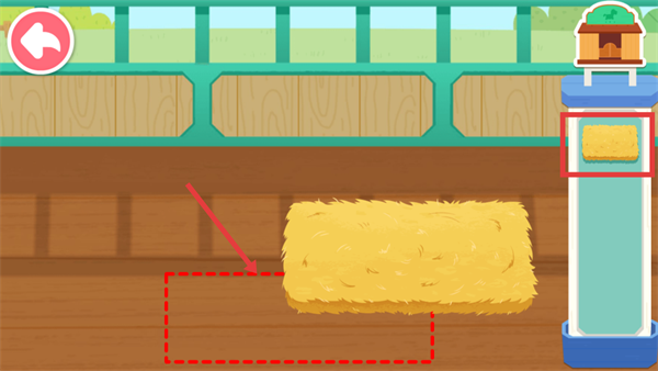 3、從右側(cè)裝置取【干草】,把【干草】移到指定區(qū)域,完成放置推進(jìn)照料任務(wù)。