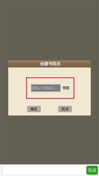 1、在【創(chuàng)建書院名】彈窗,點(diǎn)擊紅色框內(nèi)輸入框,填寫名稱后點(diǎn)【確定】完成書院創(chuàng)建。