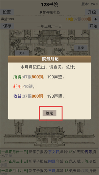 2、學(xué)子可參與科舉考試獲取功名與獎(jiǎng)勵(lì),每一次科舉進(jìn)階都能提升書院的知名度與聲譽(yù),是推動(dòng)書院等級(jí)升級(jí)的核心路徑。