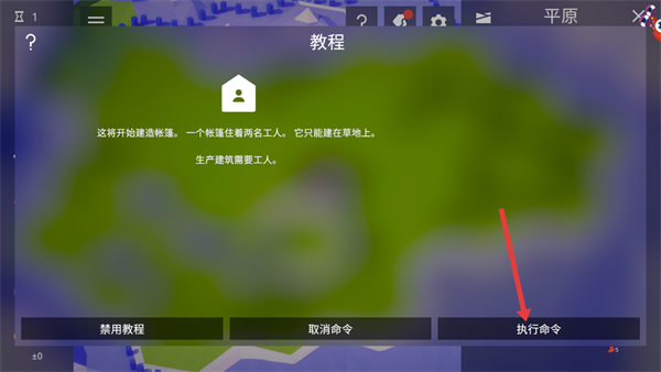 4、查看【教程】提示,了解帳篷需建在草地上且要工人,確認后點擊【執(zhí)行命令】完成搭建。