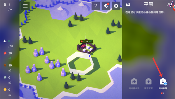 3、在【平原】場景中,點擊界面下方的【建造帳篷】選項,觸發(fā)帳篷搭建的操作流程。