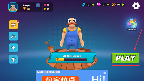 1、在【W(wǎng)OODEN-LEAGUE】界面點(diǎn)擊【PLAY】按鈕,即可進(jìn)入競技關(guān)卡開始挑戰(zhàn)。