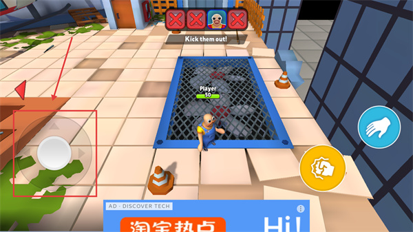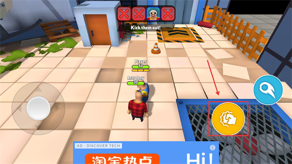 3、遇到其他角色時(shí),點(diǎn)擊【拳頭按鈕】攻擊對(duì)手,完成【Kick-them-out】的關(guān)卡目標(biāo)。