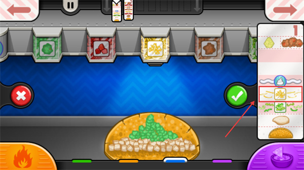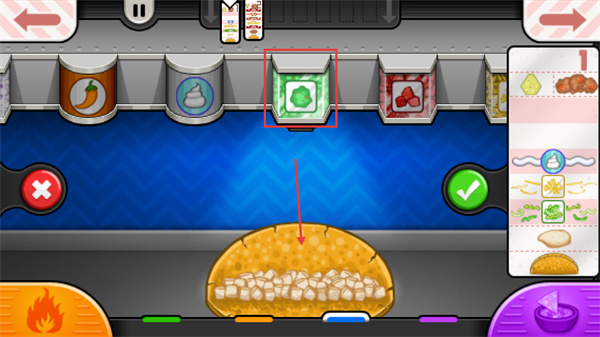 3、添加完配料后,點(diǎn)擊右側(cè)【綠色對勾】確認(rèn)步驟,確保當(dāng)前食材搭配符合食譜要求。