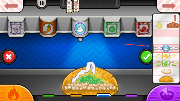 4、繼續(xù)按食譜添加醬料類,完成所有食材組合后即可制作出目標(biāo)餐品。