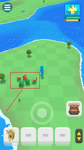 3、在場景中收集【木材】【果實(shí)】等資源,這些是后續(xù)制作工具、搭建設(shè)施的基礎(chǔ)材料。